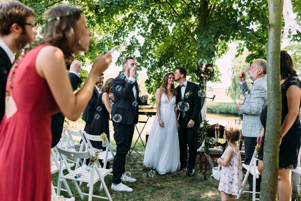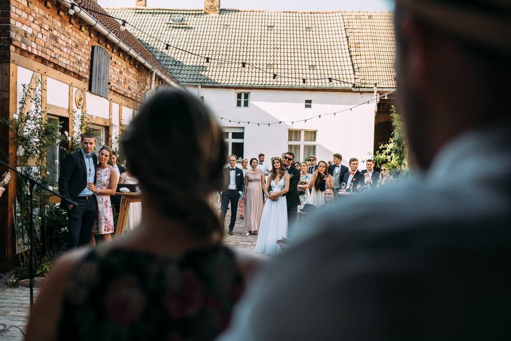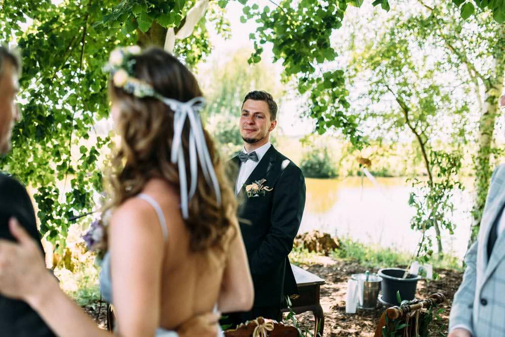 Die wohl persönlichste Art der freien Trauzeremonie: Freunde halten sie. Ein emotionaler Höhepunkt war hier auf jeden Fall das gegenseitige Trauversprechen des Paares. Da hat man selbst als Fotograf mit den Tränen zu kämpfen. Manchmal nützen da auch über 10 Jahre Erfahrung nichts… 😉