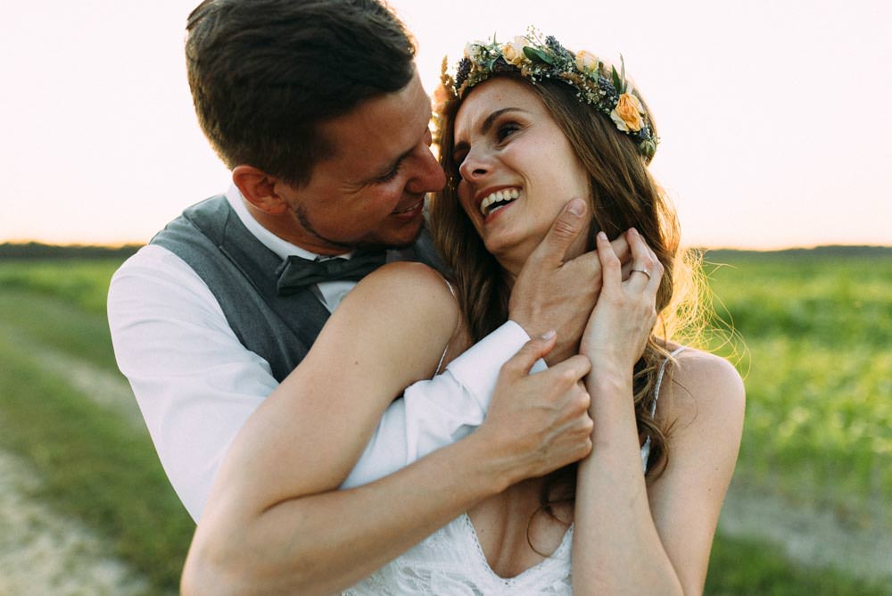 Der Vorteile an wolkenlosen Tagen: Abends hat man perfektes Licht für ein zweites Brautpaarshooting. Die Temperaturen sind angenehmer, das Licht ist der Wahnsinn und man hat nochmals Zeit für sich und kann den Trubel kurz zur Seite schieben. Übrigens müssen die Gäste so auch nicht ewig aufs Hochzeitspaar warten und die Bilder werden der Hammer!