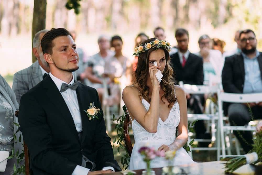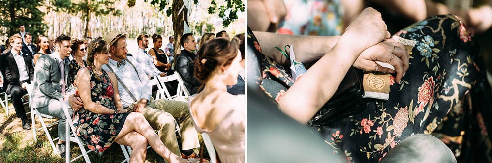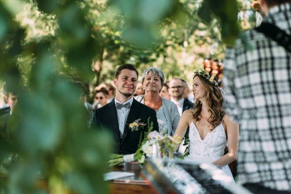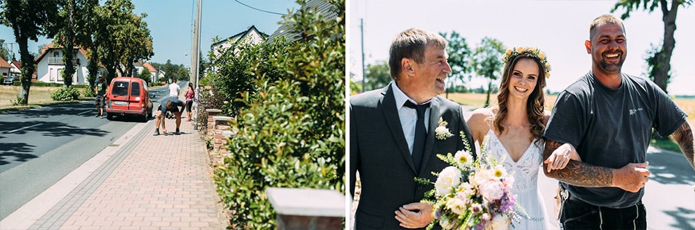 Nach dem getting ready ging es zu Fuß direkt zur Traulocation im Wald. Aufgrund der höchsten Waldbrandtstufe, standen kaum noch Orte im Freien zur Verfügung. Zum Glück stellte in letzter Minute ein Anwohner sein Wäldchen bereit. Aber irgendwie gehört dieser Trubel ja schon fast dazu.