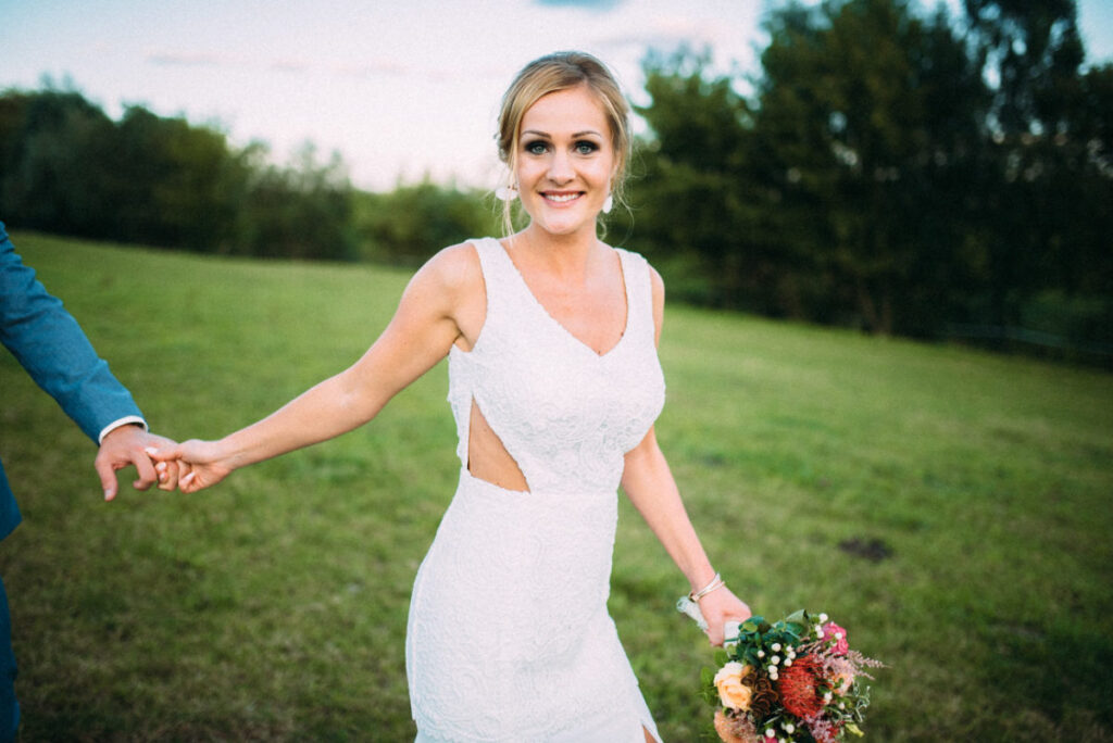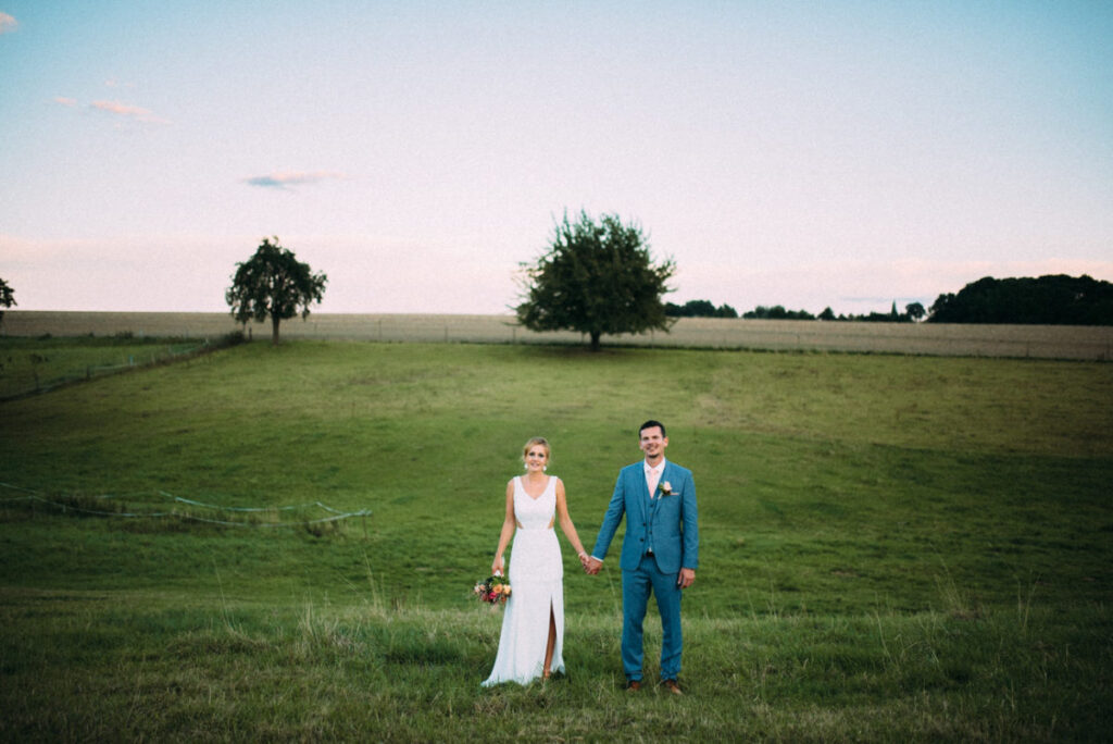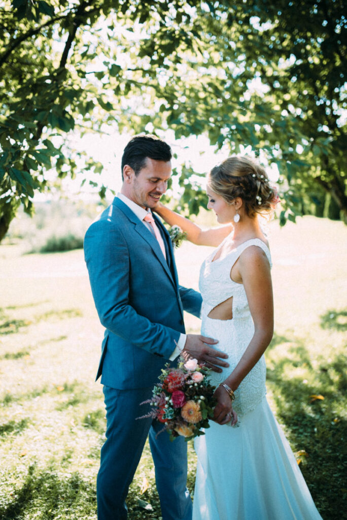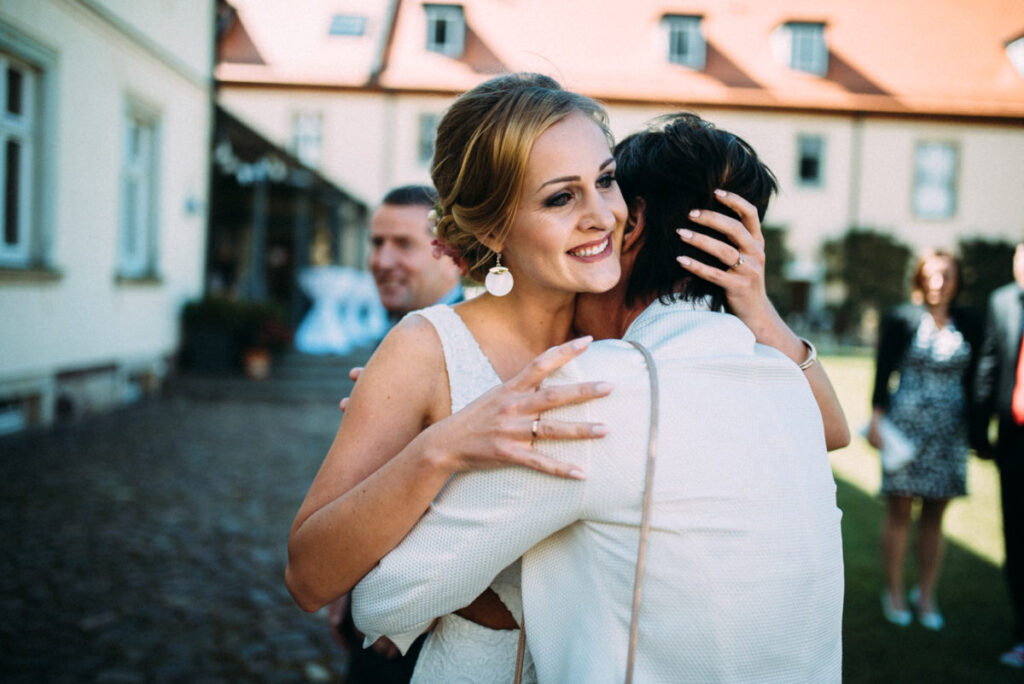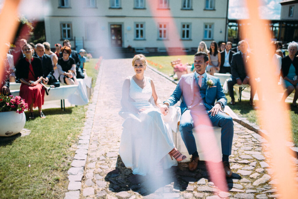 Aber jetzt mal zurück, zu dieser Hochzeit: Wir ihr seht, hatten wir super Wetter und somit konnte die Freie Trauung im Gut Haferkorn nur perfekt werden. Was mir ganz besonders gut gefiel, war die moderne Inszenierung durch Franzi und Sebastian. So ein Kleid hatte ich bis jetzt auch noch nie gesehen. Schaut mal bei Schleifenfänger in Leipzig vorbei. Dieses Unikat gibt es nirgendwo anders. In Kombination mit Sebastians Anzug und dem Hochzeitsstrauß im Spätsommer-Look wirkt diese Hochzeit frisch und inspirierend neu.