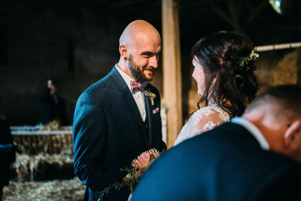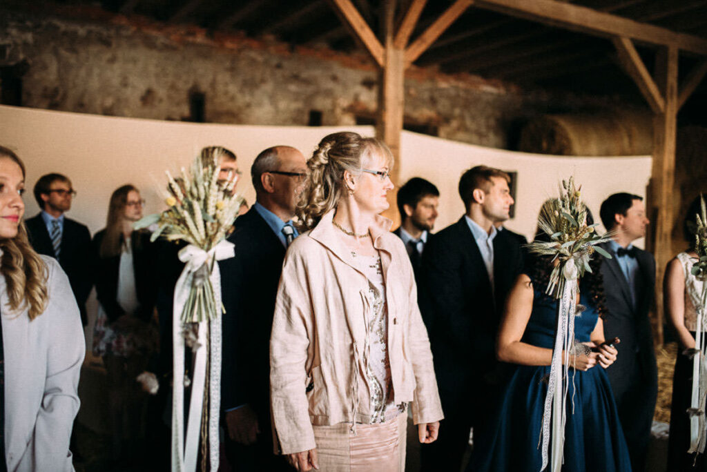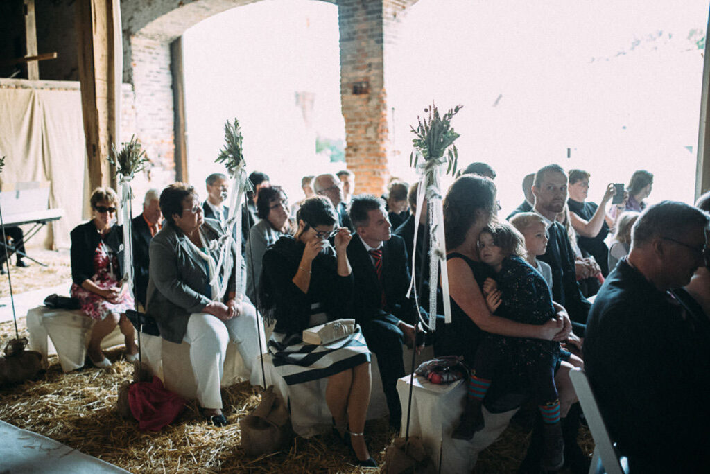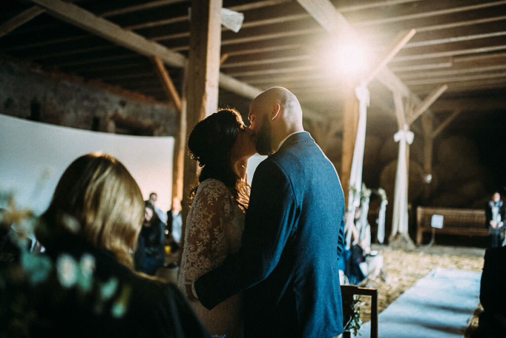 Das Tolle dabei, keine glich der anderen. Direkt neben der Location befindet sich ein Kirche, somit sind auch kirchliche Trauungen unmittelbar neben der Feier-Location möglich. Der Park und die Scheune auf dem selben Grundstück lassen auch standesamtliche oder freie Trauungen zu. Somit hat jeder die Möglichkeit seinen Tag ganz individuell zu gestalten. Der alte Kuhstall wurde zum modern rustikalen Hochzeitsambiente umgestaltet, das jedem seinen eigenen Stil ermöglicht. Die Hochzeit auf Gut Neumark in der Scheune von Stefanie und Stefano war genau das: ein Mix aus freier und evangelischer Trauung. Eine gelungene Mischung aus Altem und Neuem. Ein perfektes Ende für den Sommer und die Hochzeitssaison 2017. Das letzte Septemberwochenende zu wählen, ist natürlich etwas riskant, aber an diesem Tag war das Wetter perfekt. Ein Spätsommertag wie aus dem Bilderbuch oder wie man bei uns sagt: Altweibersommer. 😉