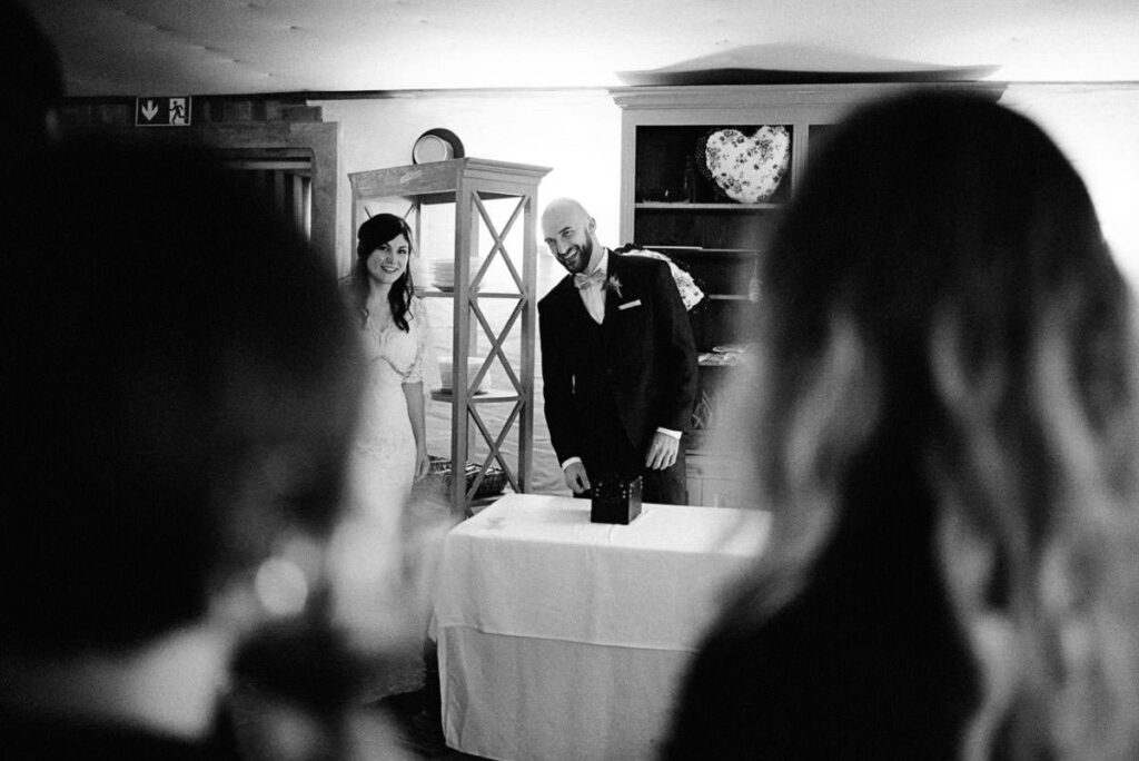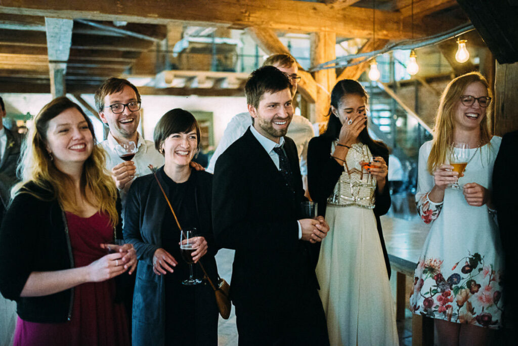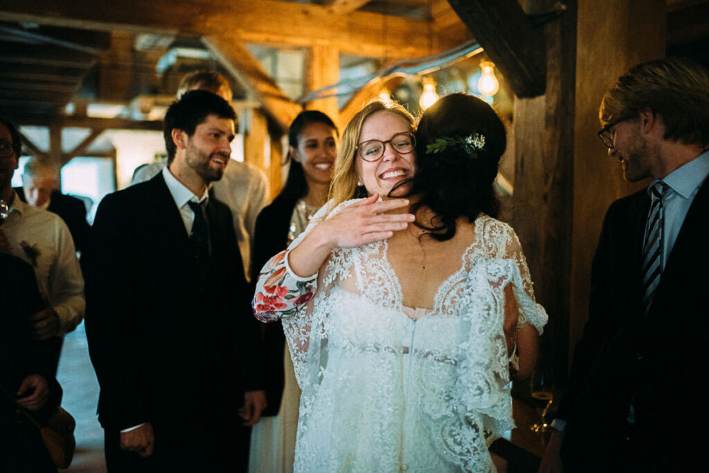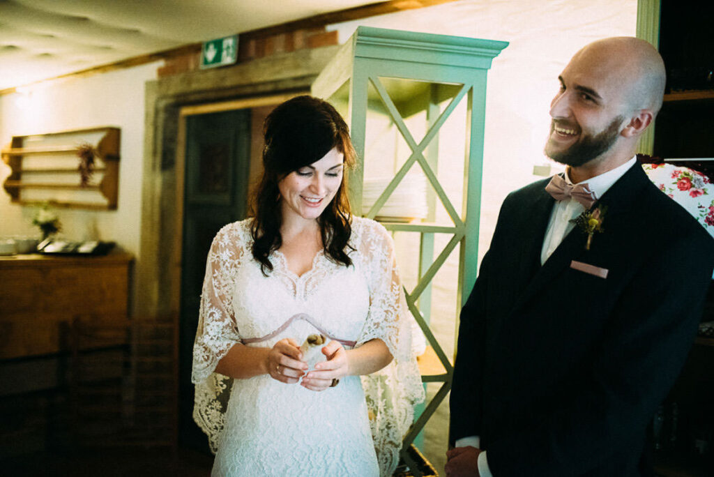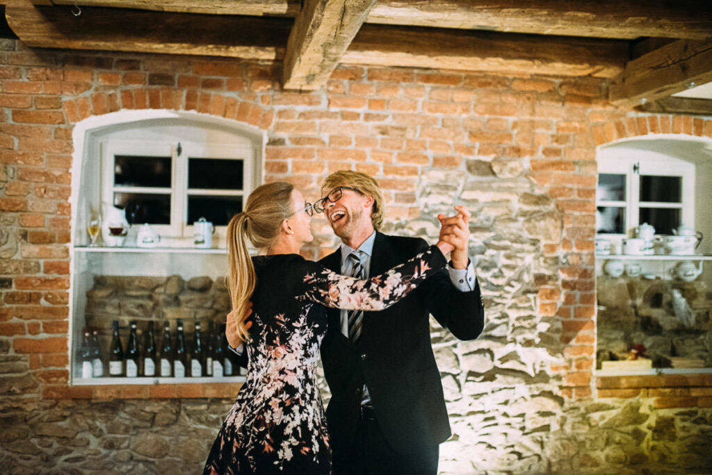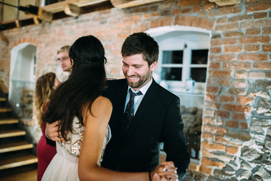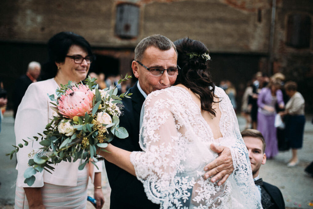 Schließlich präsentierte ich den Gästen am Abend eine kleine Slideshow, mit den Bildern vom Tag. Unterlegt mit Musik wirken so die Bilder noch ausdrucksstärker. Der fortgeschrittene Abend trägt natürlich auch etwas dazu bei. 😉 So sorgt sie jedes mal wieder für glänzende Augen und Freudentränen. Das war auch bei Stefanie & Stefano nicht anders. Hier war es aber ein anderes Familienmitglied, das mich nach Ende der Präsentation anstupste und fragte: “Kann ich Sie mal etwas fragen? Auf jeden Fall! 🙂 “Darf ich Sie mal drücken?”